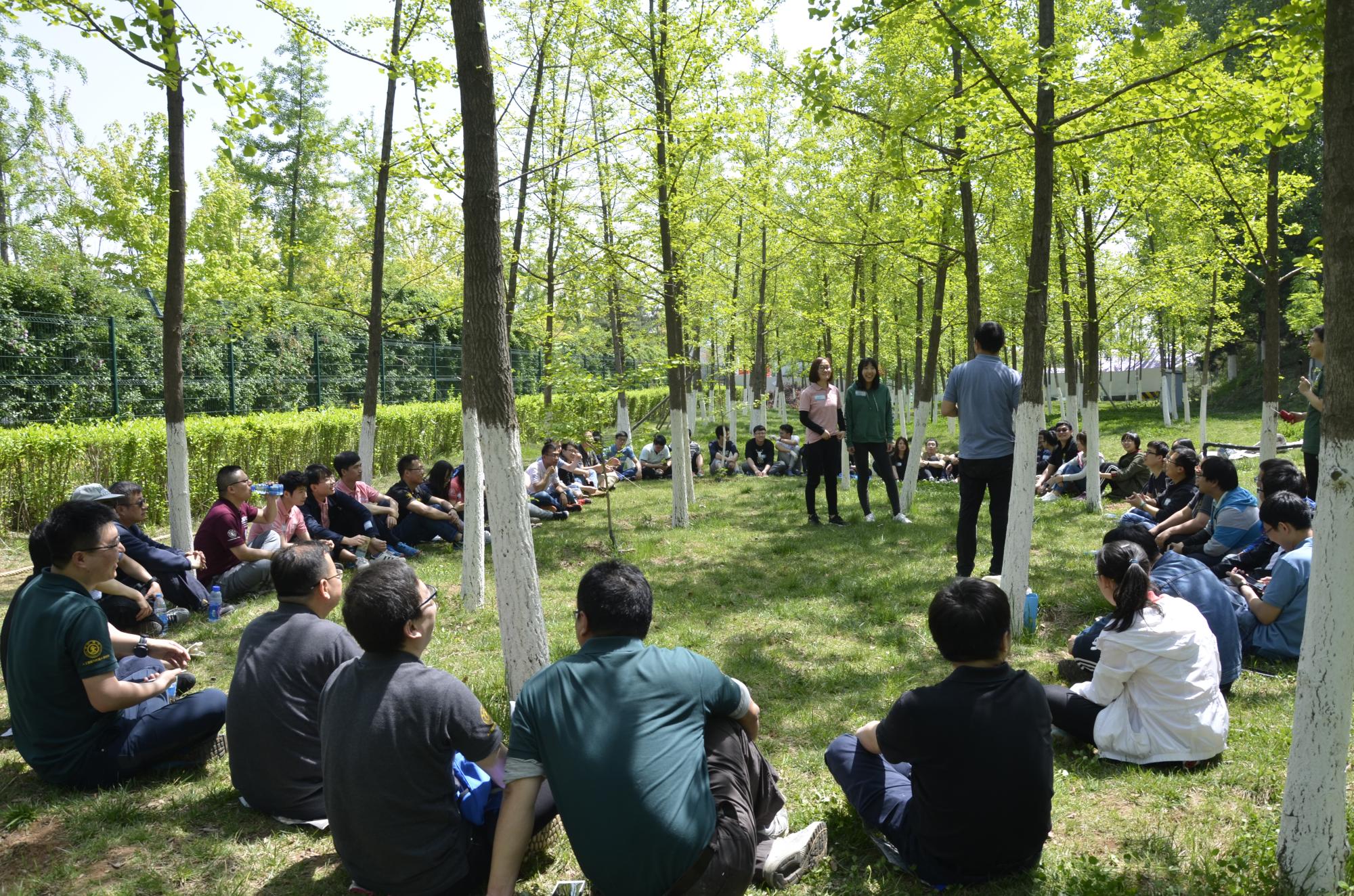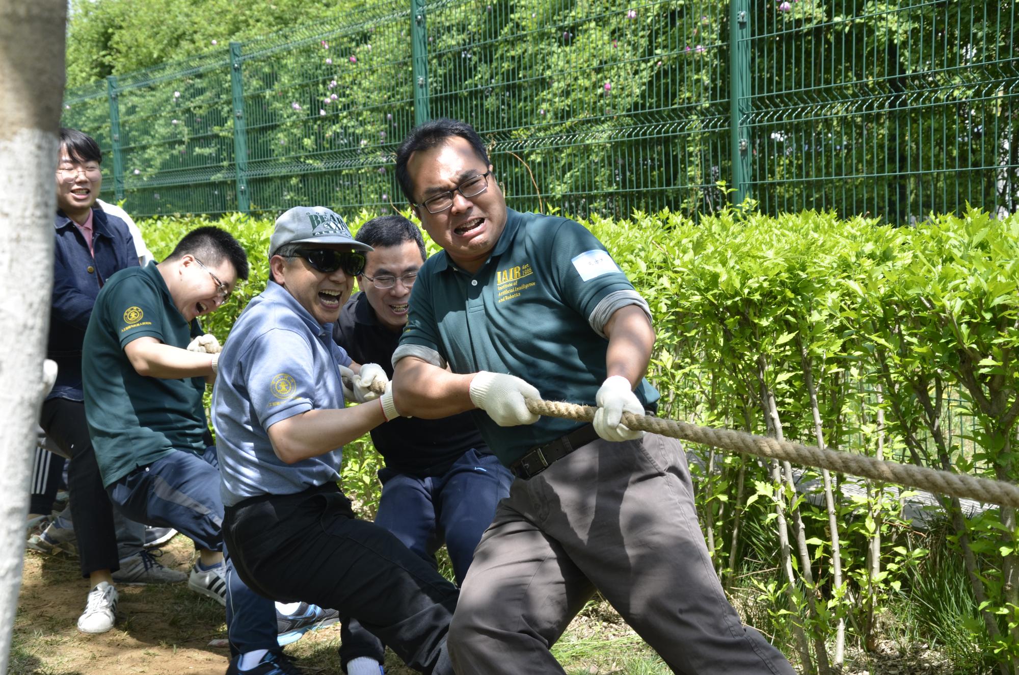 长跑结束,大家在终点合影留念,随后一同前往汉中园休息野餐。午后,又开始了拔河、击鼓传花和“无敌风火轮”等集体游戏。师生们分为东方不败、西楚霸王、南海蛟龙和北方之狼四个队进行比赛。大家个个精神抖擞,斗志昂扬,展开了激烈的角逐。人心齐,泰山移,伴随着阵阵的加油呐喊,东方不败队依靠强大的团队协作,获得了拔河比赛的第一名。拔河的休息间隙,同学和老师们在击鼓传花的游戏中各展才艺,其中刘子熠同学幽默风趣的主持,张崧翌同学声情并茂的歌词朗诵、邓杨阳同学心肺复苏技巧的现场演示以及王乐老师和学生们的联袂演唱,都给大家留下了深刻的印象。