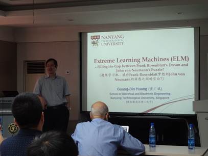 2015年5月26日上午9:00,首先由弗罗里达大学Principe教授在人机所324会议室为人机所师生作了题为“A Cognitive Architecture for Object Recognition in Video”的学术报告,介绍了他当前的研究工作,并与老师同学进行了讨论。然后,由新加坡南洋理工大学的黄广斌教授给人机所师生分享了题为“Extreme Learning Machines (ELM) - Filling the Gap between Frank Rosenblatt's Dream and John von Neumann's Puzzle?”主要介绍了机器学习的发展历程和极限学习机的基本概念。