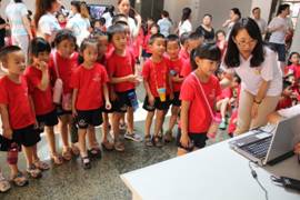 在人机所俱乐部同学和幼儿园老师的协助下,小朋友们有序地参观了分布的13个展区,如人脸卡通画绘制展区、3D裸眼电视展区、行人检测展区、摄像头测试年龄展区、“用激光画画”展区、体感游戏展区、避障机器人展区、机械臂展区、模拟火箭发射展区等。小朋友们认真聆听哥哥姐姐们的讲解、积极参与互动,在欢乐的氛围中度过一个有意义的上午。下面是开放日活动中的精彩瞬间。