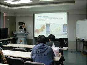 Hasegawa Mikio副教授的报告题目为“Mobile Communication Research at Mizoguchi Laboratory”。首先,Hasegawa Mikio副教授介绍了东京理科大学的发展历史。然后,他主要介绍了无线电磁频率的动态分配问题,通过将不同的频率动态分配,解决手机通信对信道的巨大的要求。Mizoguchi Hiroshi教授的报告题目是“Human-friendly machines Research at Mizoguchi Laboratory”。在报告中,Mizoguchi Hiroshi教授介绍了他们实验室在人机交互方面的研究。报告中,他还以视频的方式展示了他们研究小组在自动跟踪机器人方面的研究成果。