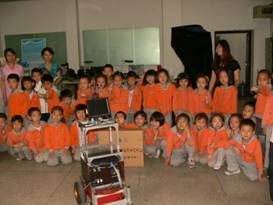 2012年5月29日,交大幼儿园大小班近300名小朋友,在老师的带领下有序的参观我所的部分研究成果,展区有室外和室内两个。