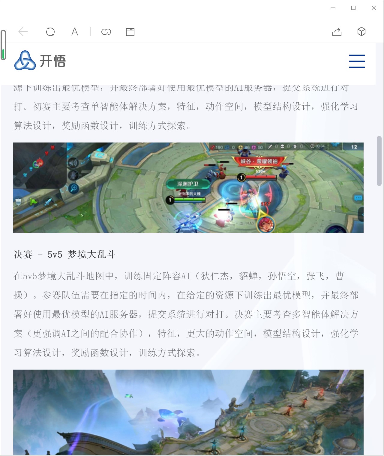 开悟MOBA多智能体强化学习大赛(简称开悟大赛)由腾讯AI Lab与王者荣耀团队联合举办。大赛期望建立产学研合作新生态,推动AI+游戏产业升级及人工智能研究的发展,同时将更好的AI能力反哺给游戏开发者,推动游戏行业的发展。