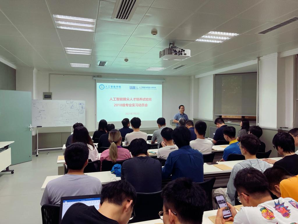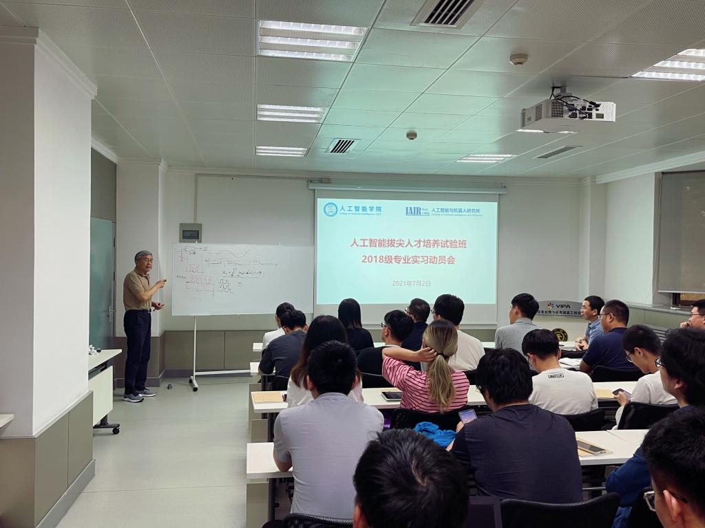 2021年7月2日,人工智能拔尖人才培养试验班2018级专业实习动员大会在科学馆315会议室召开,本科专业实习相关工作人员、带队教师、2018级人工智能拔尖人才培养试验班全体学生参加。会议由成人在线