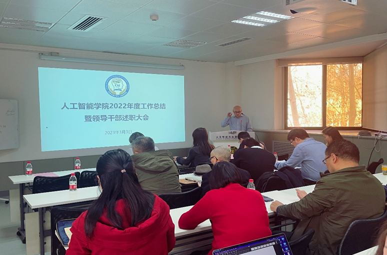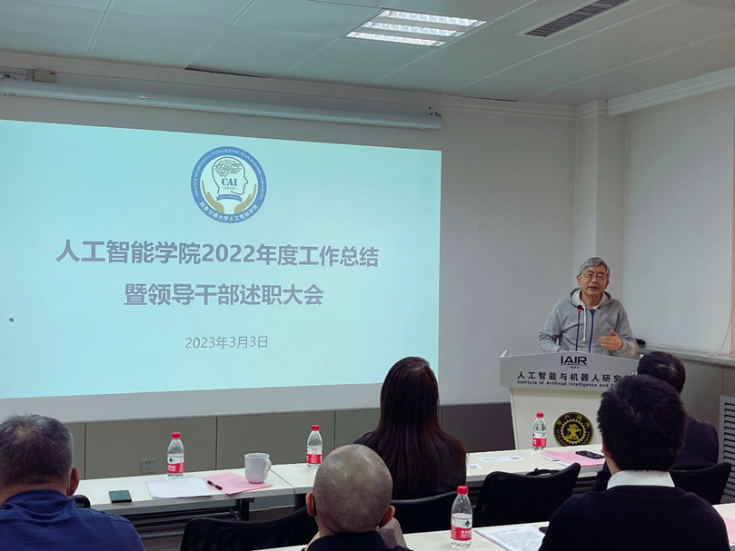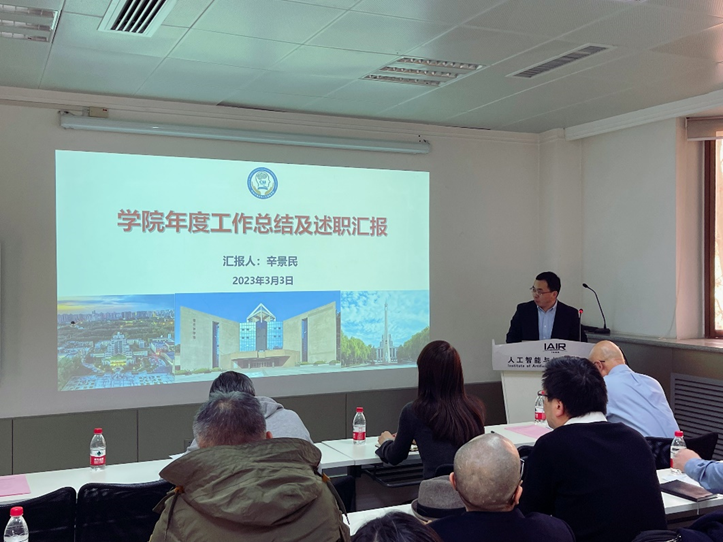 常务副院长辛景民做年度工作汇报。结合人机混合增强智能全国重点实验室、省市企业科研平台建设、学科建设、人才队伍建设等方面,辛景民对2022年度学院工作进行了全面总结,并对2023年工作进行了规划展望。