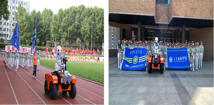 和人工智能与机器人研究所两面大旗,齐头并进,势不可挡;学院党政领导班子走在队伍前列,与全体教职工着装统一,步伐一致。通过主席台时,全体成员齐声高呼“发展体育运动,增强人民体质,弘扬西迁精神,服务国家战略”,把自信与活力展现给了全校师生。