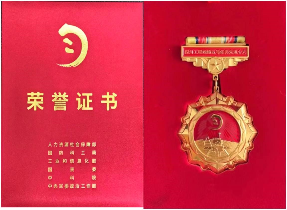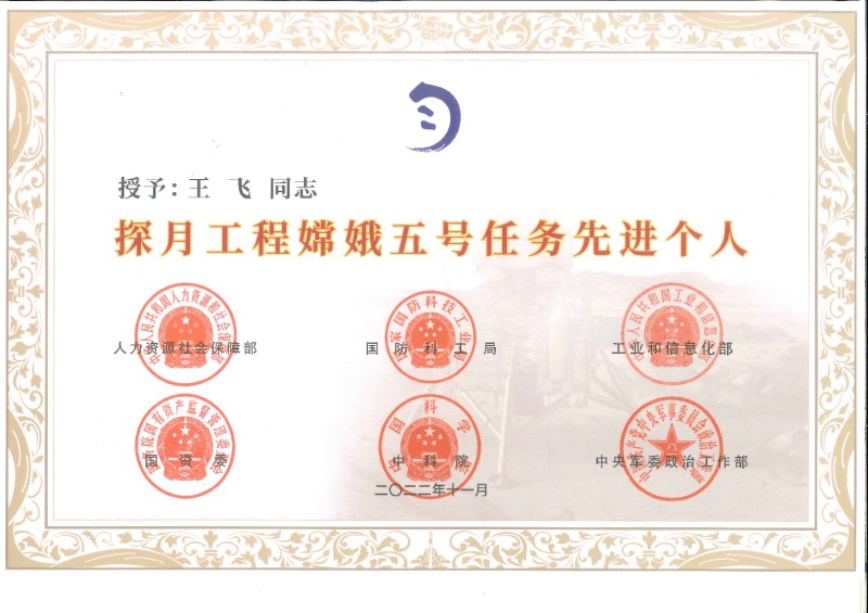 王飞教授“探月工程嫦娥五号任务先进个人”称号。