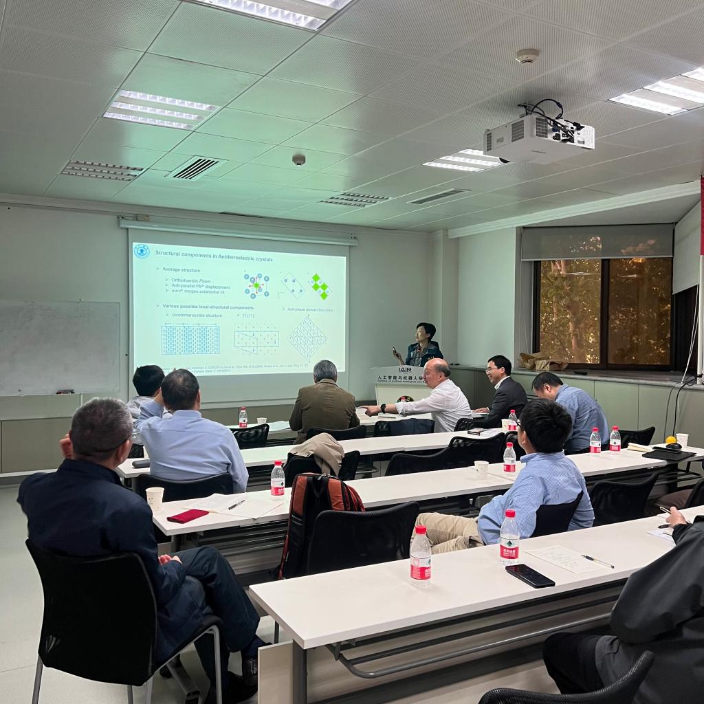 电子学院教授,博士生导师做了关于《晶体局域结构中的铁电极化》的介绍。报告介绍晶体材料的多尺度结构研究,以及晶体在铁电、压电材料的结构与性能之中的作用。