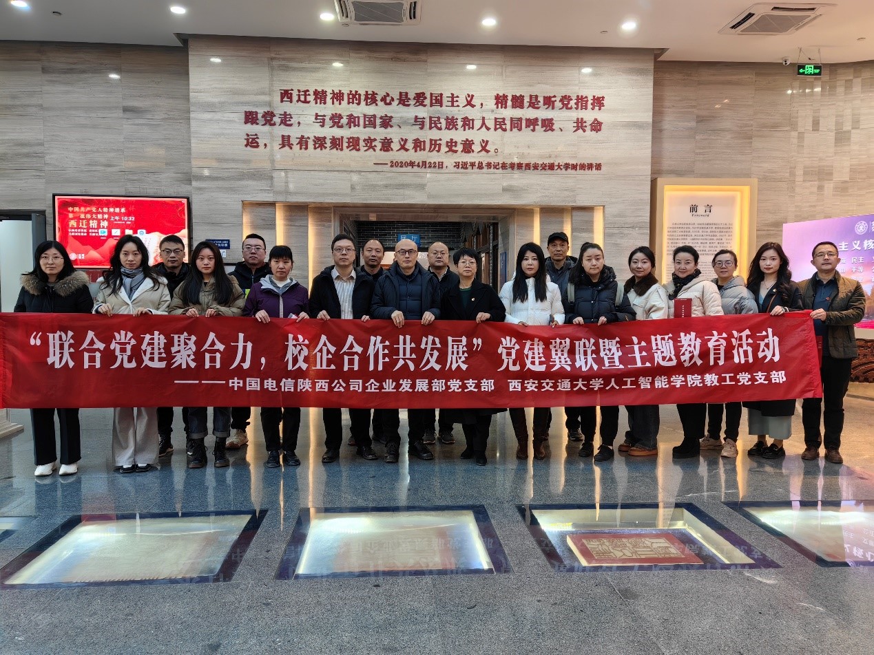 教工党支部到陕西电信进一步交流,开展联合党建活动。本次活动是一次校企协同、优势突出、业务融合的支部共建创新实践,充分发挥了"双带头人"党支部头雁领航的积极作用,初步构建了“共联共享共建共促”的联建模式。双方党支部将以此次活动为契机,深化交流合作新起点,以联学强党性,以联研共谋划,以联建促提升,共同为推进校企合作贡献力量。