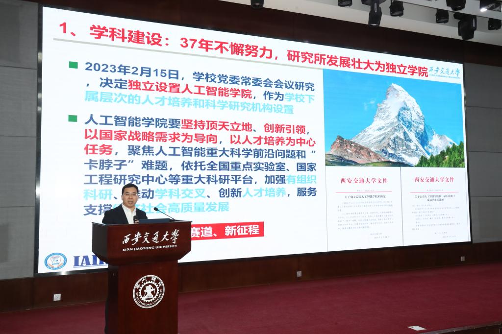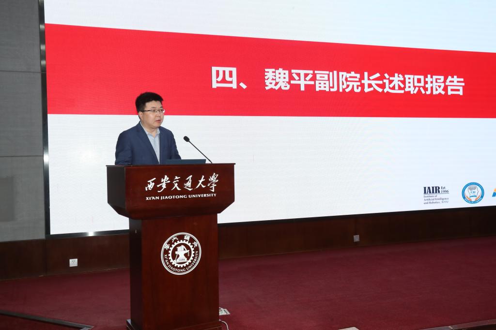 对在人工智能产教融合平台重大项目申报、国家研究生教学成果一等奖等申报材料的组织撰写过程中,做出积极贡献的郑南宁、辛景民、孙宏滨、刘剑毅、张雪涛等23名教师致以敬意;对牵头申报立项的国家重大(重点)科研项目负责人、各类奖项的获得者、获得国家级人才称号的教师表示祝贺;对在学院行政服务工作中表现优异的个人进行表彰,同时也对承担学院公共事务工作的班主任、辅导员、人机所俱乐部主席等青年教师表示由衷的感谢。