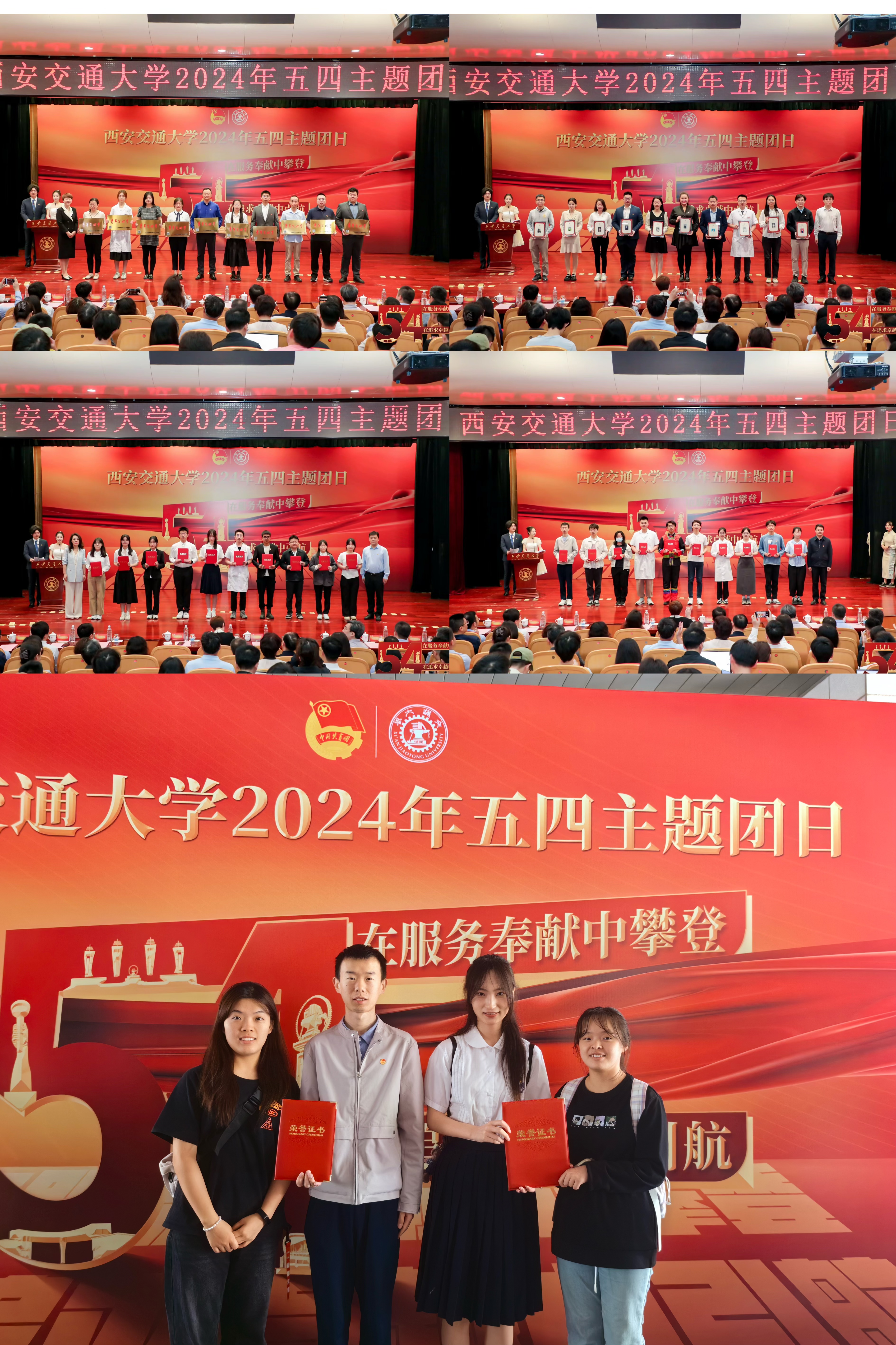 青年创新集体领取“青年文明号”奖项,硕2245团支部作为全校“红旗团支部”代表领奖,孔凡杰同学作为全校“优秀共青团员”代表领奖。
