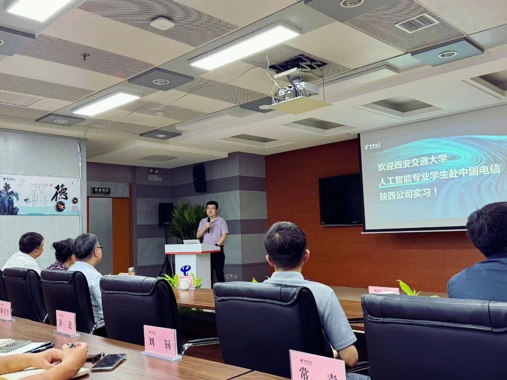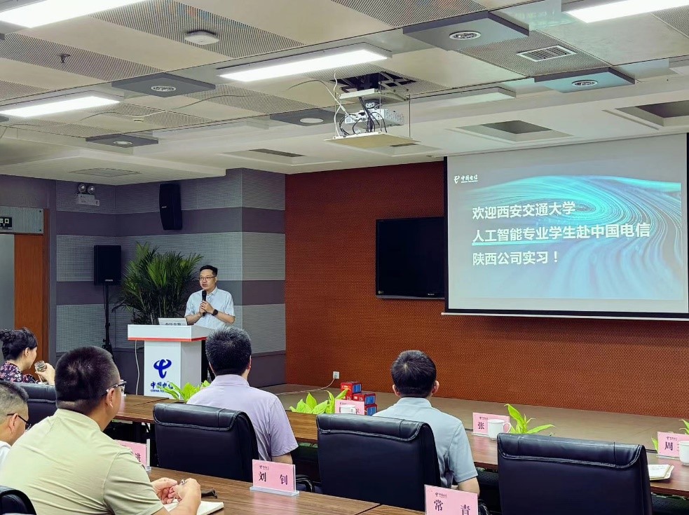 2021级人工智能专业学生赴中国电信陕西公司实习欢迎会在中国电信陕西公司综合楼二楼报告厅开展。陕西电信相关负责人、西安交大2021级成人在线