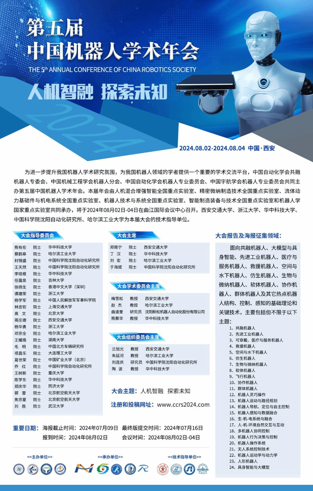 第五届中国机器人学术年会,将于2024年8月2日-4日在西安曲江国际会议中心举办。成人在线