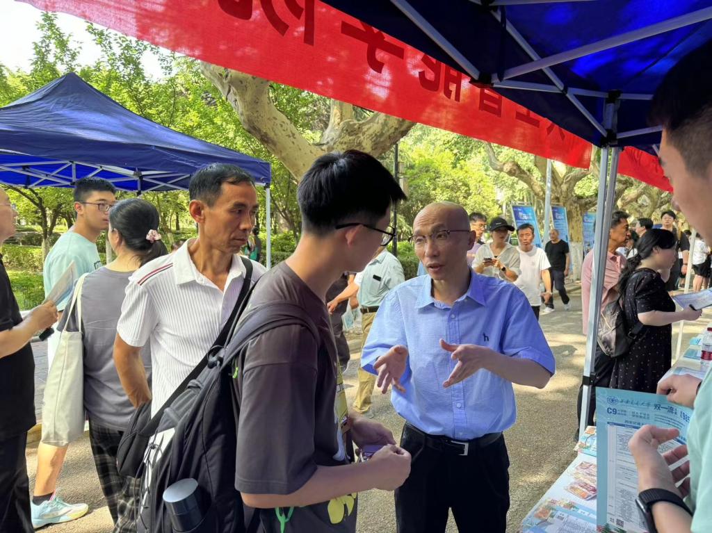 招生工作组杨勐、孙艺璇、杨曦、杨奔、李宝婷在现场和大家交流并解答高考招生问题,国家级领军人才陈霸东教授也专程来到现场与考生和家长深入交流,解答专业问题。
