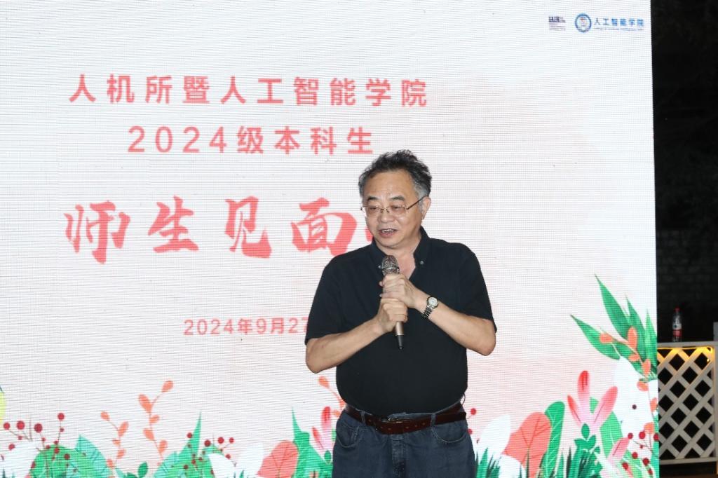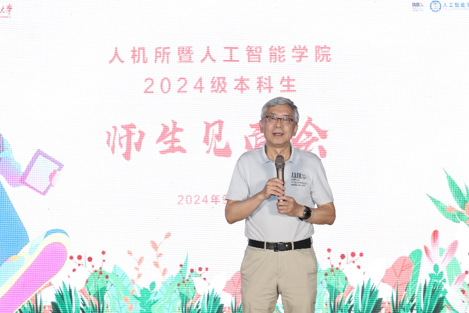郑南宁教授在新生见面会上致辞。他说,“智慧,从来都是激情的澎湃;创新,必然都是思想的飞翔”。他鼓励新生们勇于探索未知,科学探索与创新要时刻面对不可预见的挑战,迎接挑战意味着要敢走前人不敢走的路,要去解决前人没有解决的问题。他鼓励同学们要主动与学院老师面对面的交流,而老师在育人中也实现了与同学们的共同成长。最后,郑老师祝24级新同学能够在成人在线