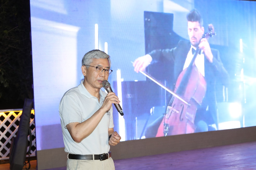 在交流会后,师生进行了一场别开生面的演唱会。以辅导员洪苏涵、班主任党路娟、教务员孙艺璇和青年教师武佳懿组成的合唱队一首“你曾经是少年”为开场,刘跃一同学的俄语版“喀秋莎”、朱浩然同学的吉他弹唱、王弋飞同学的“流浪地球2主题曲”、刘雨沁和胡文婷同学的小合唱歌声悠扬,刘俊副主任一首“听海”深情演绎,张雪莼和肖馨桐同学一首清丽的器乐合奏 “渔舟唱晚”更是将大家带入了宁静致远、悠然自得的意境中。学院教师子弟孙佑熙、王子桐小朋友专程带来了一首“祝老师节日快乐”。而平时在课堂上侃侃而谈的孙宏滨、魏平、丁宁、刘剑毅、房建武等老师们上台展示了他们文艺青年的一面。