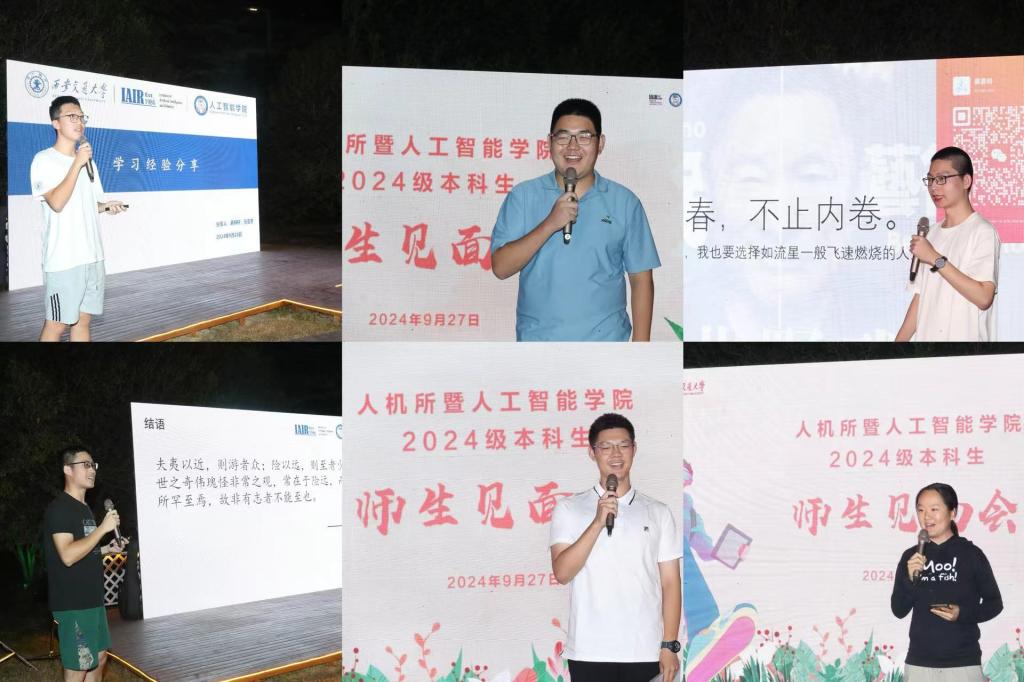 全体教师与2024级本科生在南洋酒店玉兰花园草坪上召开了一次别开生面的师生见面会,学院120余名师生参加。会议还特别邀请北京大学人工智能研究院査红彬教授、我校钱学森书院院务主任田博、网络信息中心副主任刘俊等老师参会,学院党委副书记李杰主持会议。
