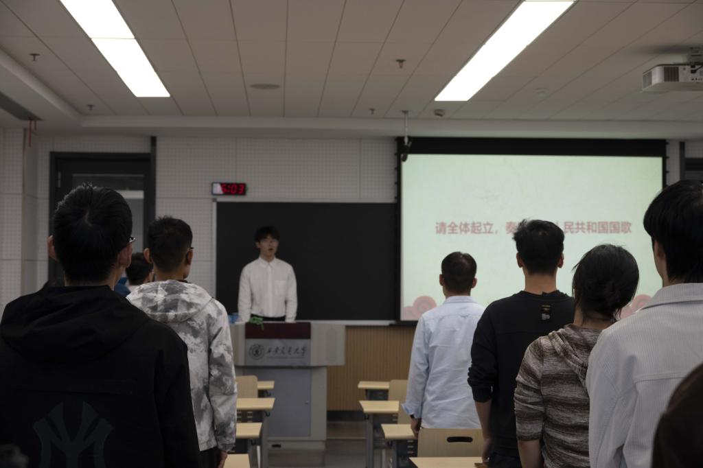 会议开章,全体到场人员起立齐唱国歌。悠扬的国歌不断回荡,心中的国旗反复飘扬,在庄严肃穆的氛围中,成人在线
