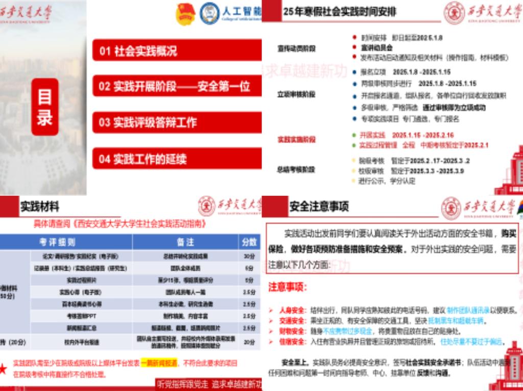 活动伊始,团委学生副书记席媛媛就此次寒假社会实践的相关细则进行全面解读,详细讲解了实践活动的具体时间统筹、注意事项以及后续考核标准,鼓励实践队伍认真参与此次实践活动并形成高质量的实践报告与心得,提醒大家在实践过程中通过照片或视频认真记录重要瞬间,做好资料留存,为参与寒假社会实践活动的同学们提供了全面的指导和要求。