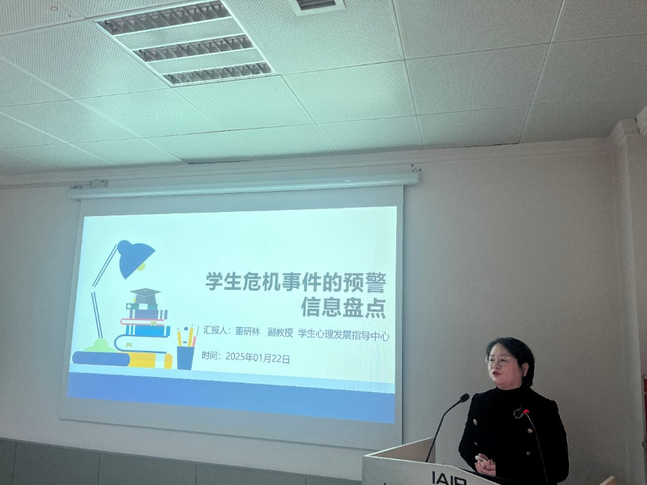 为深入了解学生思想动态,本次总结会还特别邀请了学生心理发展指导中心董研林副教授,作了题为“学生危机事件的预警信息盘点”的报告。董老师结合具体实例,从专业角度剖析了当前新时代下学生的特点,为老师们日常与学生交流提供了有益的参考和启示。