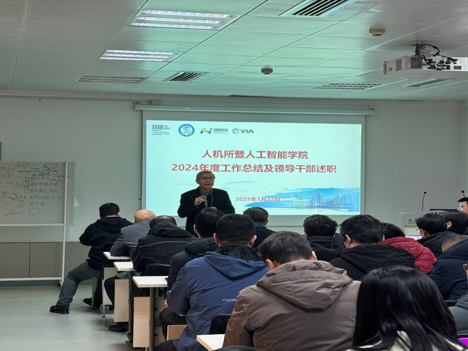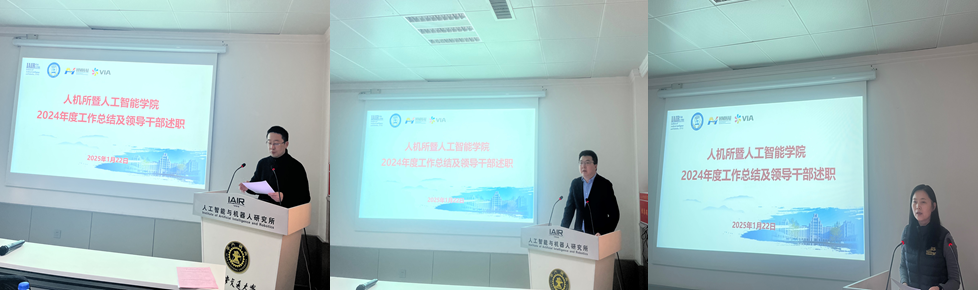 执行院长辛景民进行了年度工作汇报及个人述职。他全面回顾了2024年学院在学科建设、科研平台、科研工作、队伍建设、人才培养及财务公开六大方面取得的佳绩,特别强调了由郑南宁教授牵头的教育部人工智能领域本科教育教学改革试点工作(人工智能“101计划”)对推动我国人工智能学科发展的重要作用。辛院长表示,2025年学院将继续秉承顶天立地、创新引领的理念,以国家战略需求为导向,将人才培养作为中心任务,聚焦人工智能重大科学前沿问题和“卡脖子”难题,依托全国重点实验室、国家工程研究中心等重大科研平台,加强有组织科研,推动学科交叉融合,创新人才培养模式,为经济社会高质量发展提供有力支撑。