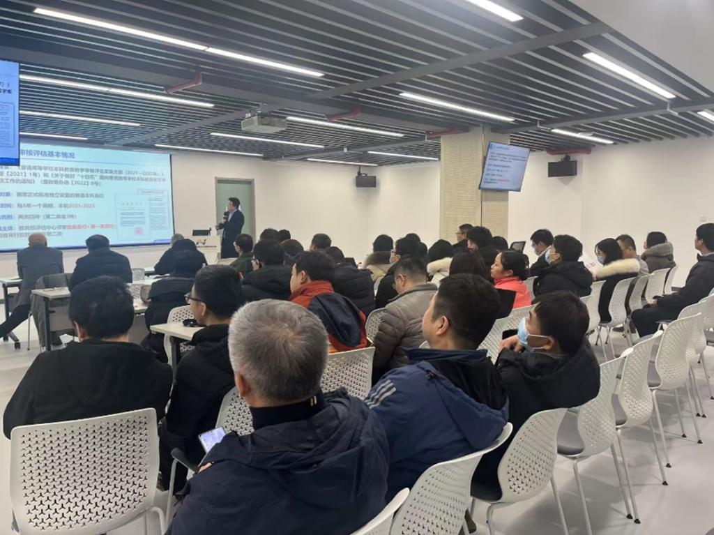 魏平副院长介绍了新一轮本科教育教学审核评估的背景,从新一轮审核评估的目的作用、基本原则、特点及评估程序等方面详细解读了教育教学审核评估工作方案,号召全院师生为迎接新一轮审核评估工作做好充分准备,并对评估工作进行具体安排和部署。