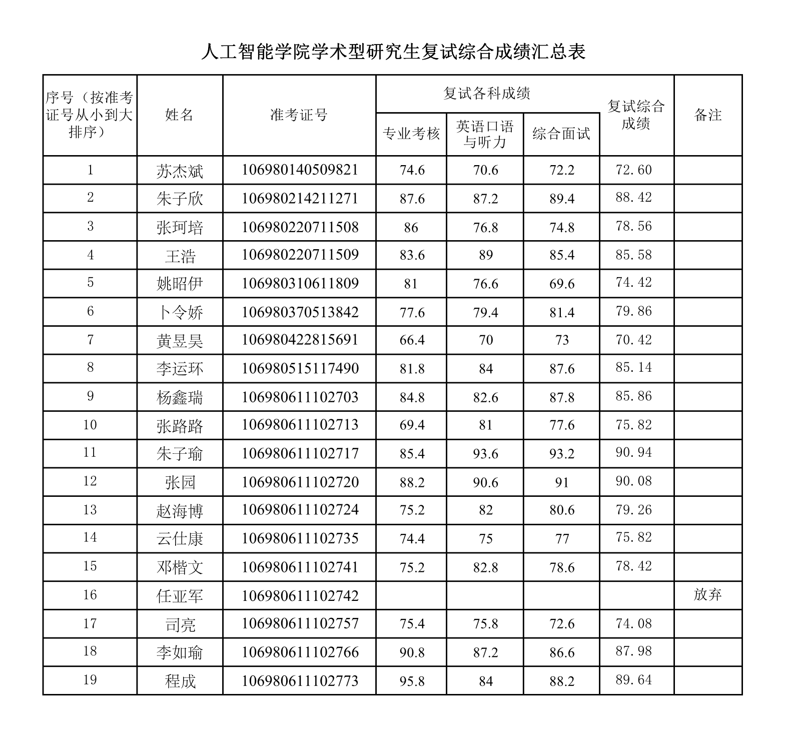2020年成人在线 研究生复试成绩公示